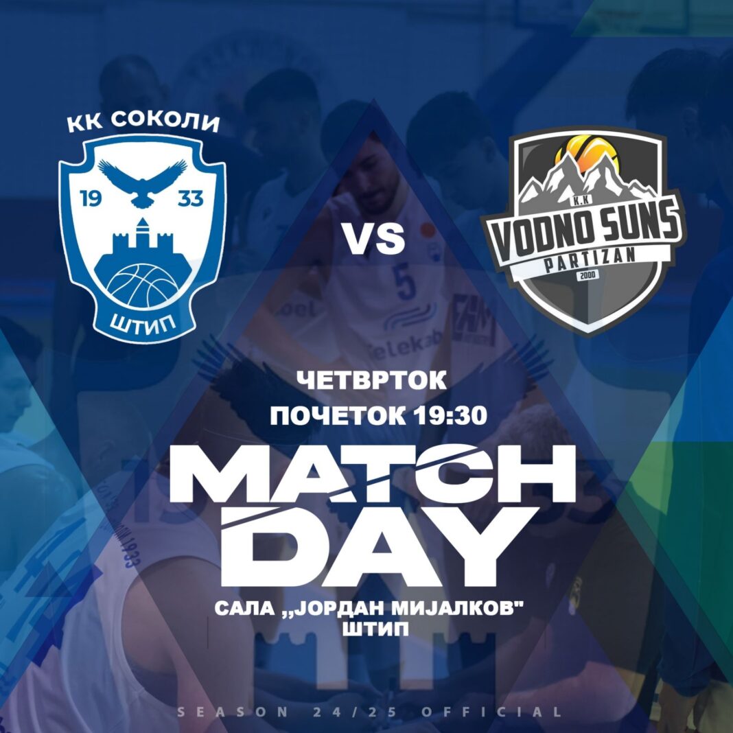 Денес, со почеток во 19:30 часот во салата “Јордан Мијалков” се игра претпоследниот кошаркарски натпревар од регуларниот дел помеѓу екипите на КК Соколи и КК Партизан Водно Санс.