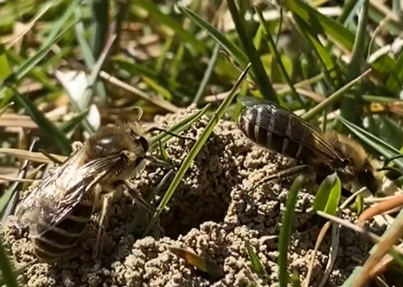 Истражувањето раководено од студентот Стив Хог, открило прецизна динамика на ова „подземно општество“. Тимот користел специјални мрежести шатори со цел да ја следи густината на популацијата и времето на излегување на пчелите од земјата. Според резултатите, мажјаците се првите кои се појавуваат во април, веднаш штом температурите достигнат околу 21 степен, по што нивната улога е да ги чекаат женките за парење. Истовремено, истражувачите регистрирале и присуство на паразитски пчели од родот Номада, познати како „кукавички пчели“, кои ги полагаат своите јајца во гнездата на рударските пчели, каде нивните ларви се хранат со складираниот полен на домаќинот.