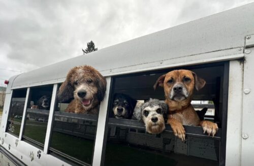 Во Канада постои нешто што буди насмевка кај секој љубител на животни-куче кое се качува на мал жолт автобус, шепи на седиштето, јазик надвор и среќно упатено кон „училиште“, за да не остане само дома.