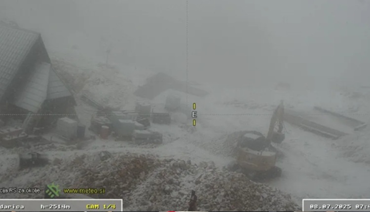 На снимките од метео-камерите на врвовите Кредарица и Канин јасно се гледа првиот јулски снег, а на највисоката метеоролошка станица на Кредарица во 10 часот биле измерени 0 степени Целзиусови.