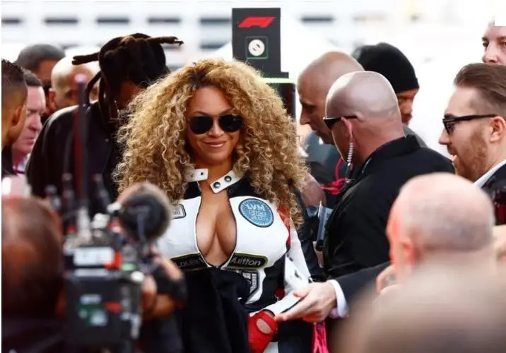 Мегапопуларнатапејачка на патеката во Вегас се појави во друштво на сопругот Џеј Зи во тесен комбинезот за возење Луј Витон, кој ги истакна нејзините бујни облини.