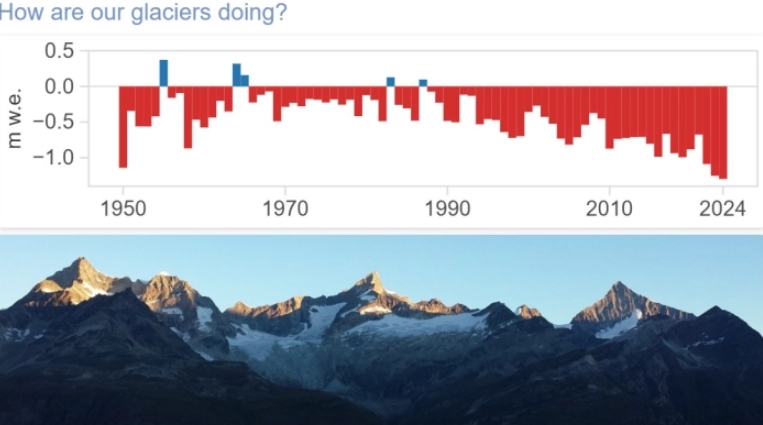 За 48 години од 1976 година, глечерите ширум светот изгубиле речиси 9.200 гигатони мраз, според Светската служба за следење на глечерите (WGMS) на Универзитетот во Цирих. Еден гигатон е милијарда тони.