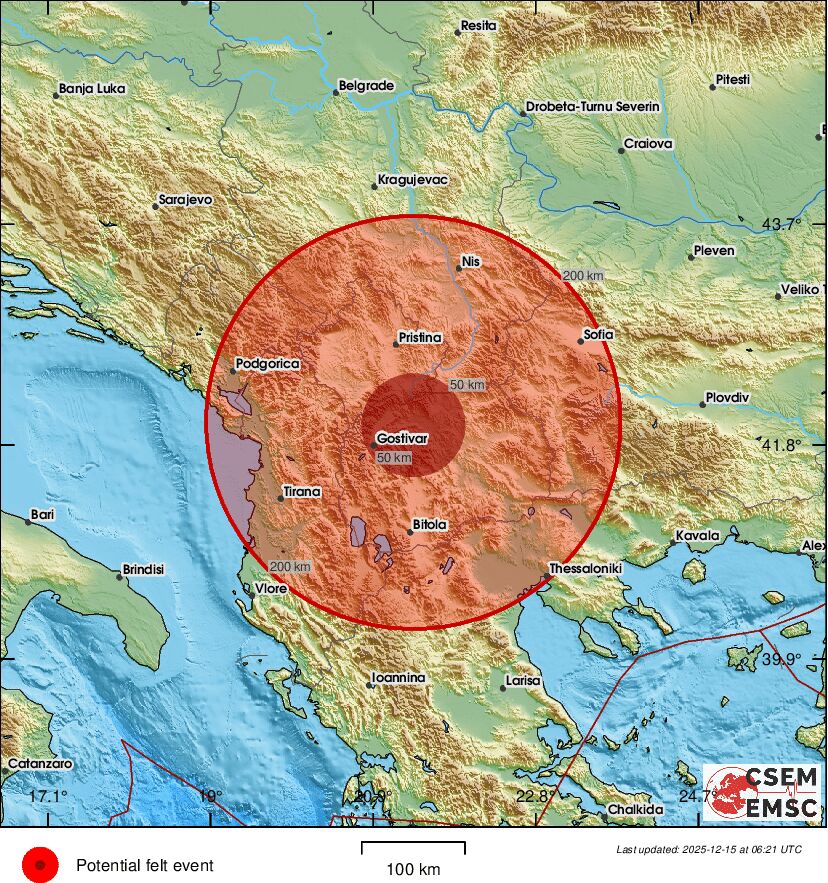 Како што објави ЕМСЦ епицентарот на земјотресот бил на 35 километри од Приштина, на границата меѓу Косово, Србија и Македонија.