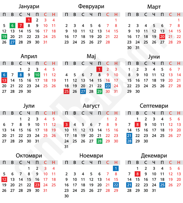 Во продолжение следува листата со неработни денови и државни празници во 2025 година: