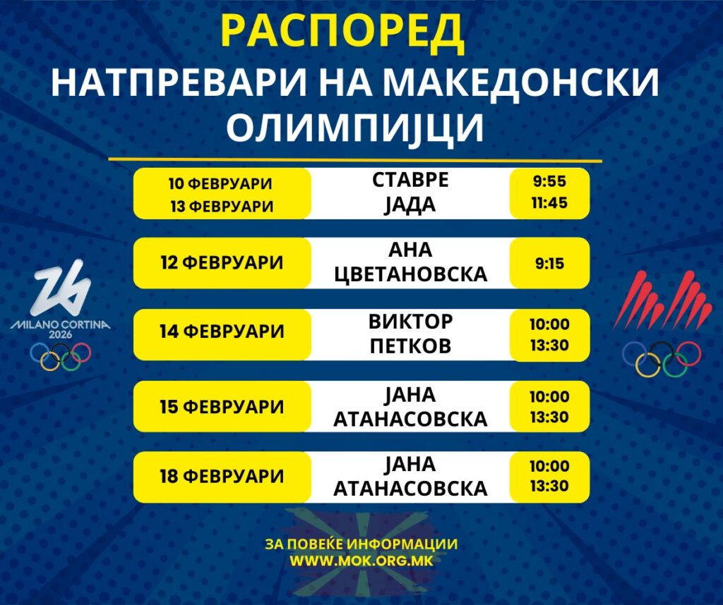 Официјален распоред на настапи на македонските спортисти на Зимските олимписки игри:
