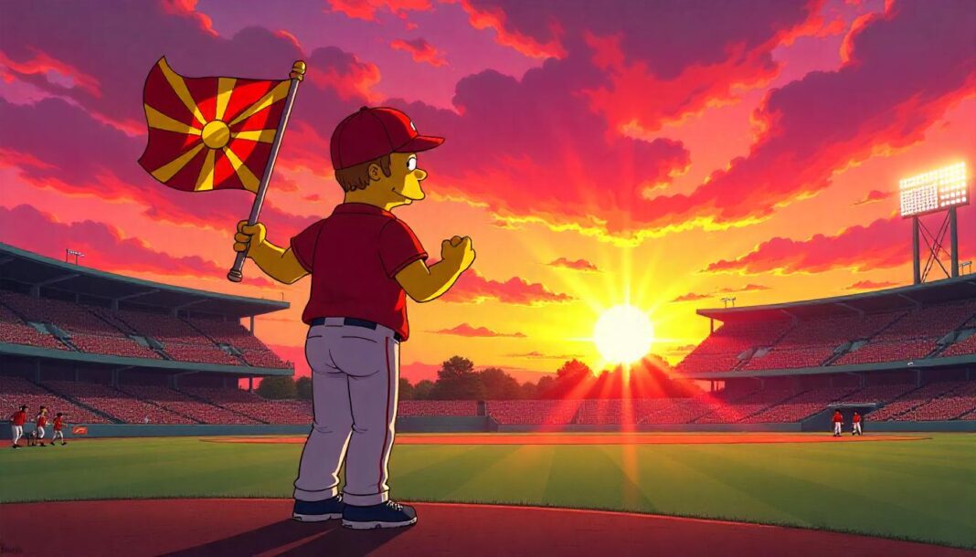 – Креаторите на „Симпсонови“ одлучиле да внесат лик – спортист кој доаѓа во Спрингфилд како голема сензација од Македонија. За кој спорт станува збор? Нормално, за најпопуларниот и најисконски македонски спорт… бејзбол – објави Нешкоска.