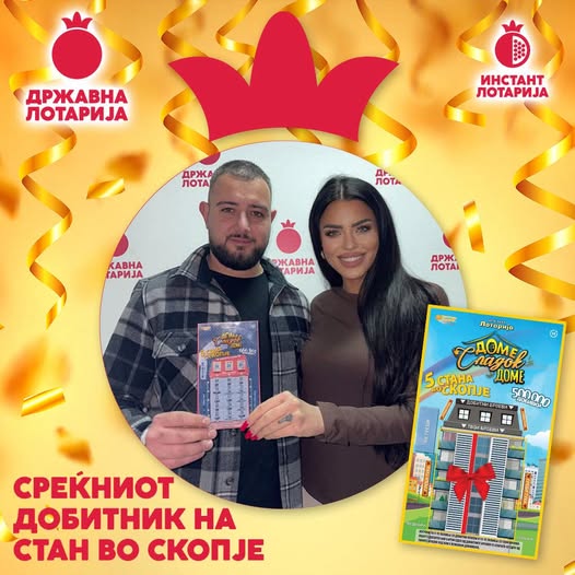 Ордан Зарински од Штип освои стан во Скопје од инстант лозот „Доме сладок доме“ на Државна лотарија.