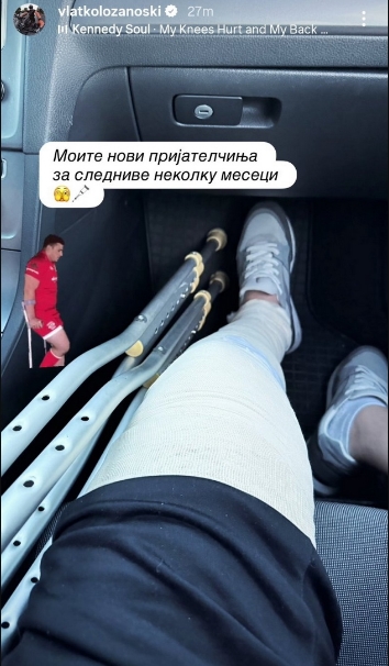 Од објавата на „стори“ се гледа преврзаната нога од сериозната повреда за која како што пишува ќе му треба подолго време за санација и рехабилитација.