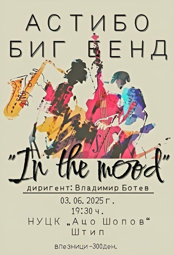 “Ја имаме честа да ве поканиме на првиот концерт на новоформираниот џез оркестар во Штип ,,Астибо биг бенд”. Стандардна формација на на секции кои го сочинуваат секој џез оркеста, на 3 јуни во Дом на култура ,,Ацо Шопов” Штип ќе настапи со програма прилагодена за сите генерации, со цел да се врати и промовира џез културата во нашиот град.” – стои во соопштението за јавноста од страна на организаторите.
