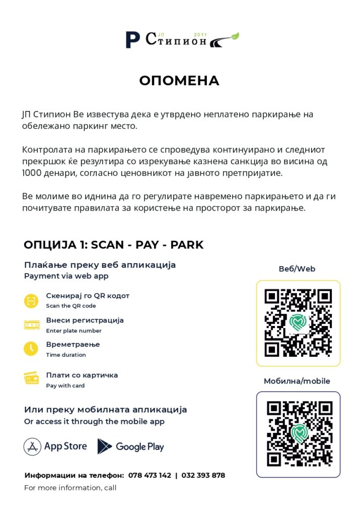 Апелираме до сите граѓани да ги почитуваат правилата за паркирање и сообраќајната сигнализација. Со одговорно однесување придонесуваме за побезбеден, поуреден и пофункционален град за сите. – стои во официјалното соопштение од ЈП Стипион.