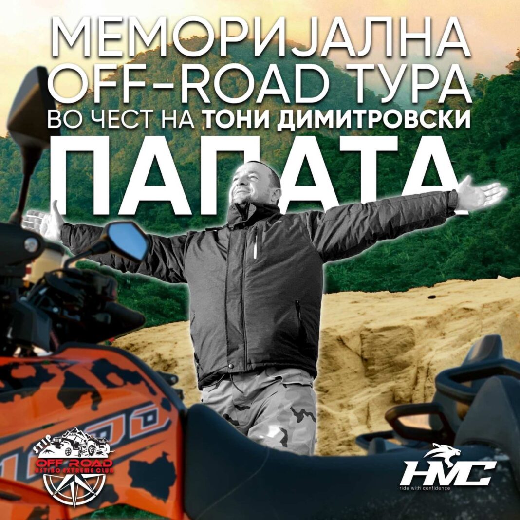 Ве покануваме да ни се придружите на посебен меморијален настан што го организираме во чест на нашиот драг другар и член– Тони Димитровски – Папата, кој не е повеќе меѓу нас, но засекогаш останува во нашите срца. Настанот е отворен за сите оф роад ентузијасти кои сакаат да оддадат почит на човекот кој живееше со срце за теренот и адреналинот во него .